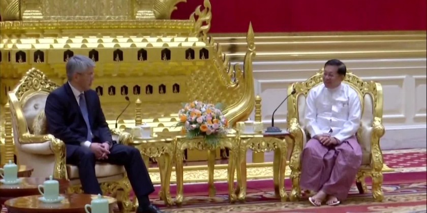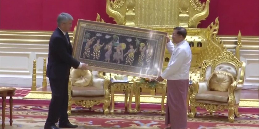 Chairman of the State Administration Council Prime Minister Senior General Min Aung Hlaing received Head of Republic of Buryatia Mr. Alexey Sambuevich Tsydenov and party at his office in Nay Pyi Taw on Friday.