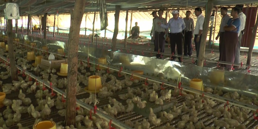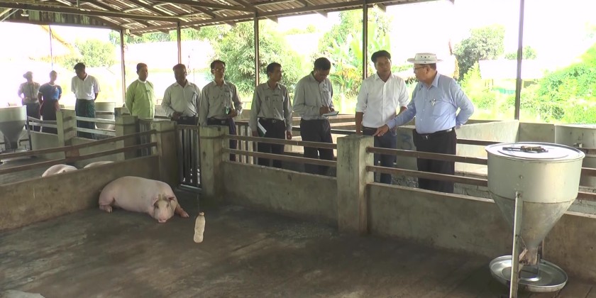 Subsequently, the Deputy Minister visited a private livestock farm in Yathay Taung Village, inspected the condition of broiler chickens and pigs, instructed on animal infectious disease prevention and biosecurity.