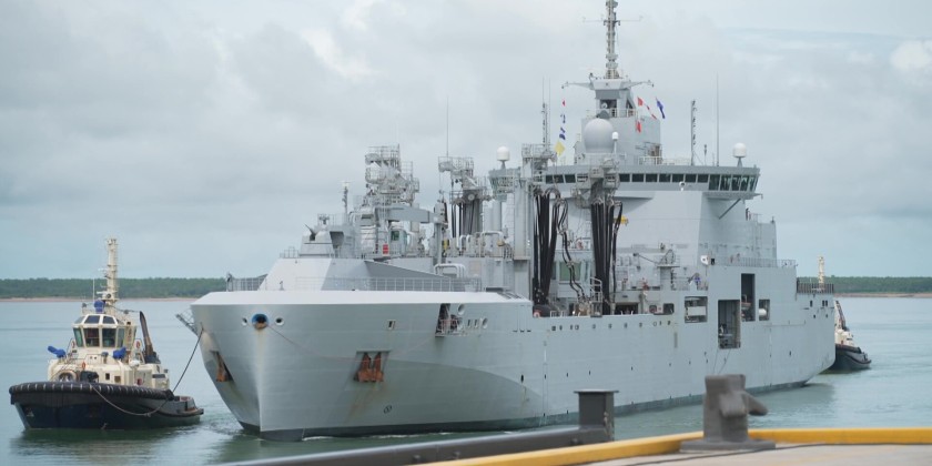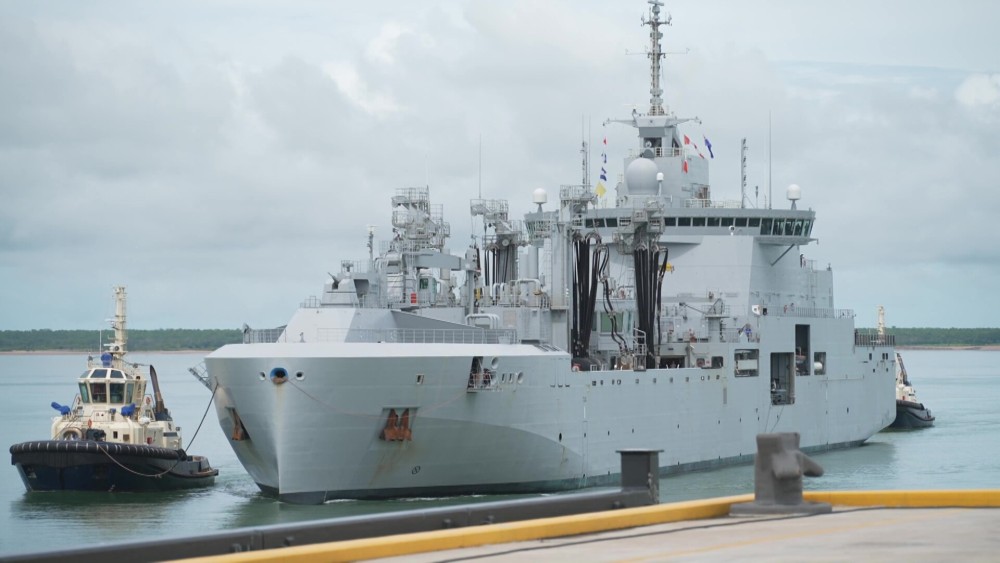 After a three-month voyage around the world, the FS Jacques Chevalier will call Australia home, for now. The French supply ship docked at HMAS Coonawarra, hosting a number of distinguished local guests.
