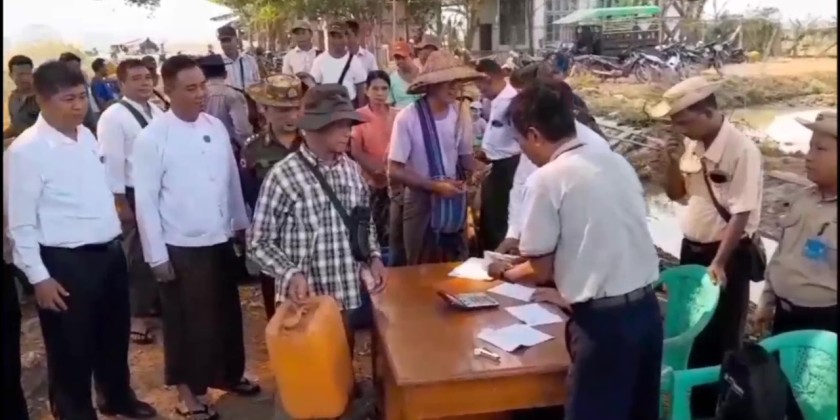 Farmers in Kun Chan, Aye Chan Thar, Pin Thaung villages of Lewe Township, Nga Kaung Kan and Nat Thaye villages of Pyinmana Township, and Kyi Taung, Gyo Pin, Lay Tha villages of Zeyar Thiri Township can purchase fuel at the rate of one gallon per acre, priced at 10,000 kyats per gallon.