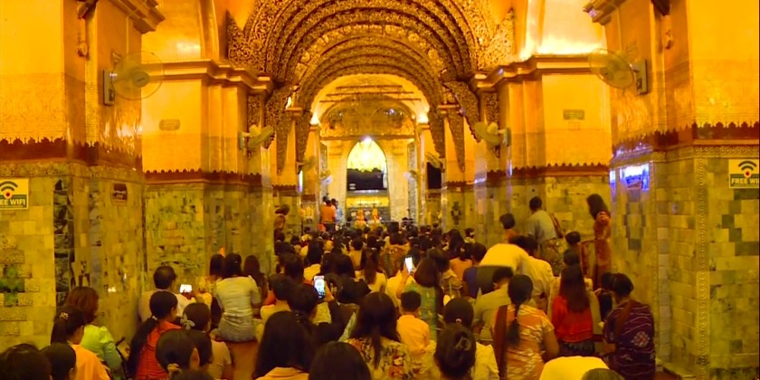 In the morning, pilgrims were crowded at the Maravijaya Buddha Image, the World tallest marble curving Buddha Image and Uppatasandhi Pagoda in Nay Pyi Taw Council Area. Likewise, Shwedagon Pagoda in Yangon Region and Maha Myat Muni Buddha Image in Mandalay Region were crowded with pilgrims, offering oil lamps and paying homage.