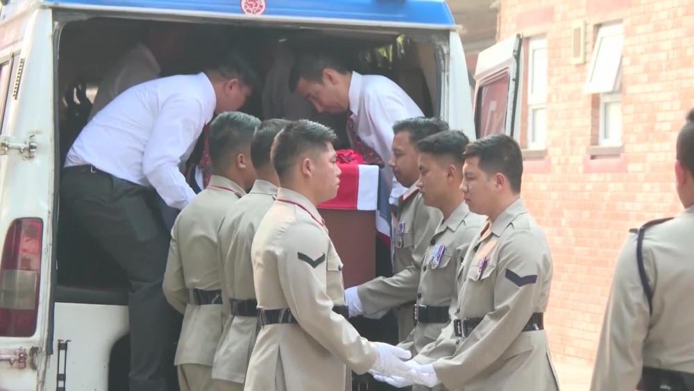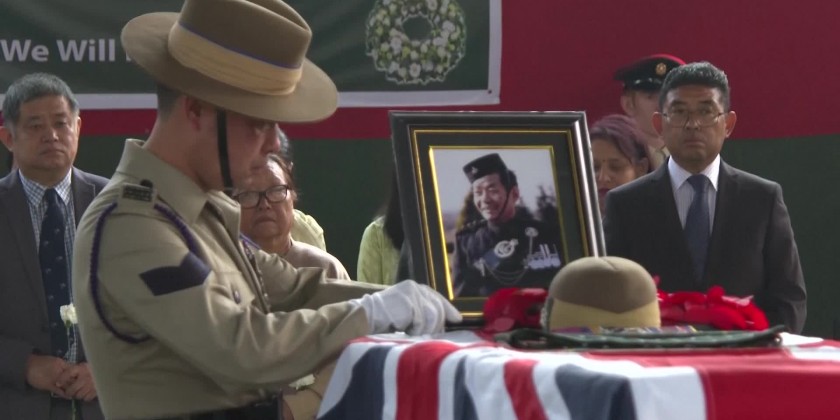 Family members, former Gurkha soldiers and soldiers currently serving in the British Army placed wreaths and flowers on the casket during the funeral.