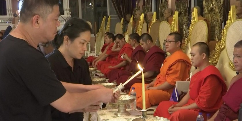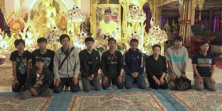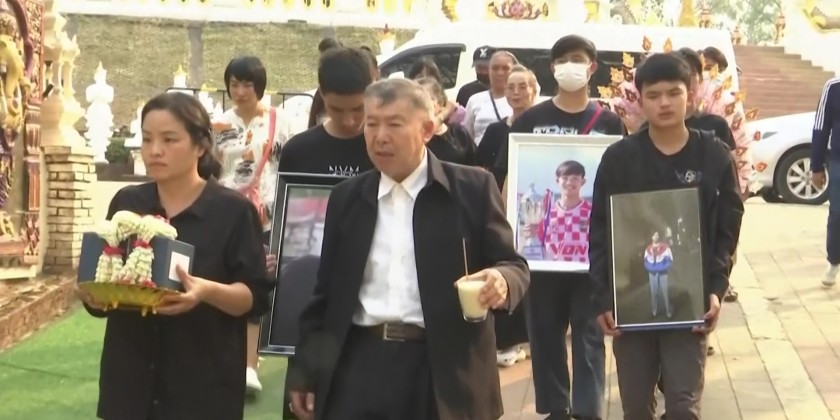 Family and friends of Duangphet “Dom” Phromthep, one of the soccer players rescued from a flooded cave in northern Thailand in 2018, bid farewell to their teammate who died in the U.K. last month.