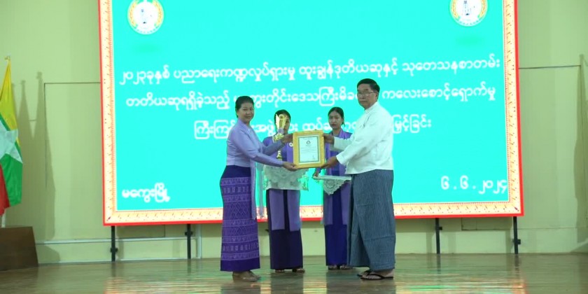 A ceremony to further honor the Magwe Region Maternal and Child Welfare Supervisory Committeewho won the 2ndprize in 2023 Education sector activities and 3rdprize in research paper was held at the meeting hall of collective office in Magwe Township with the attendance of the Chief Minister U Tint Lwin and wife, region ministers and wives, many of the rconcerned officials and invited guests.