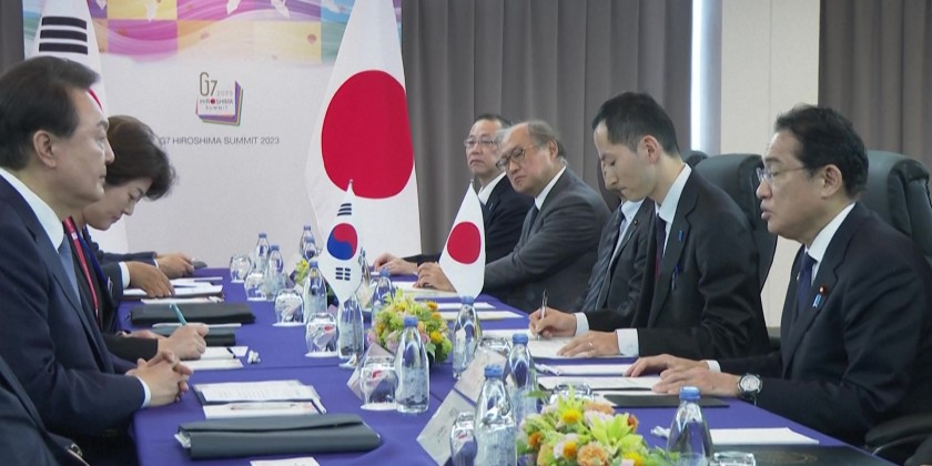 Japanese Prime Minister Fumio Kishida holds bilateral meeting with South Korean President Yoon Suk Yeol at Hiroshima G7 summit, after visiting a memorial to Korean victims of the atomic bomb attack together. They reaffirmed their stance on improving the relationship between the two countries by praising each other's actions and words.