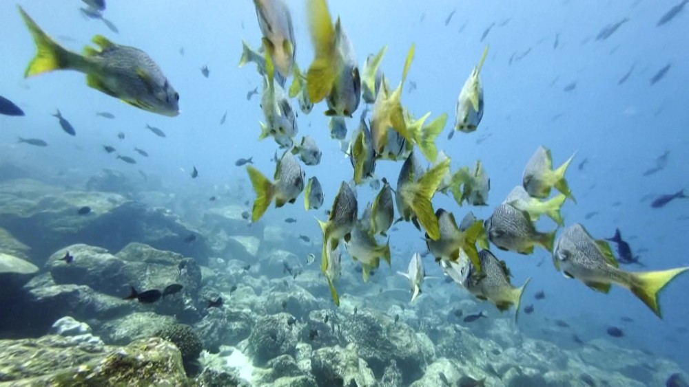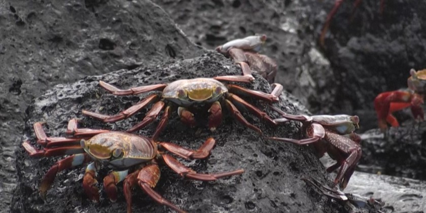 These islands are famous for their unique biodiversity and played a crucial role in the development of Charles Darwin's theory of evolution by natural selection. Wildlife including marine iguanas, green sea turtles, giant tortoises and several species of birds, as well as of and scopes and tourists, in Ecuador's iconic Galapagos National Park.