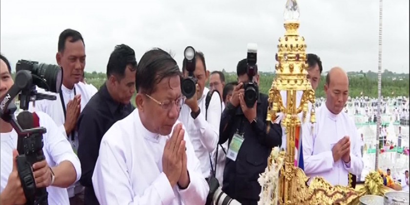 The gala ceremonies of consecration for the Maravijaya Buddha Image which will be highest sitting marble Buddha Image in its kind on the world erecting in Dakkhinathiri Township, Union Territory Nay Pyi Taw, hoisting umbrella atop the stone inscription stupas and merits sharing was held in the morning on 1st August, 2023, full moon day of (Second Waso month), 1385 Myanmar Era.