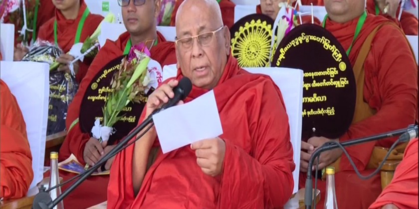 Next, the most senior members of Sangha led by the secretary Sayadaw of the State Sangha Mahanayaka Committee were conveyed into the Maha Mingalar Pandal.