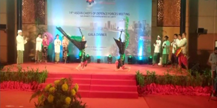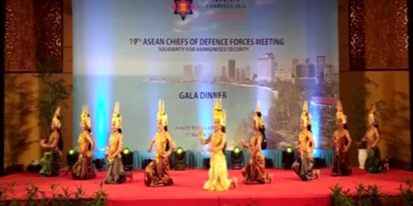 During the dinner, the music troupe entertained with traditional songs and dances. After the dinner, the Chief of General Staff and the Commanders-in-Chief of Armed Forces from ASEAN nations and wives exchanged gifts with the Commander-in-Chief of the Royal Cambodian Armed Forces and posed for a documentary photo.