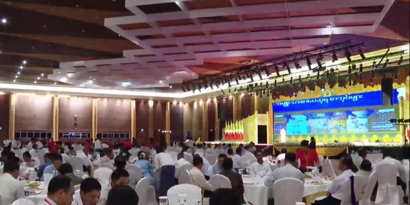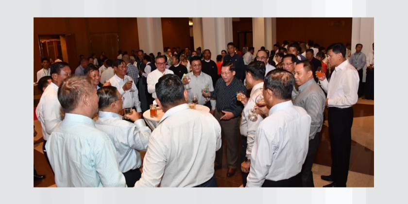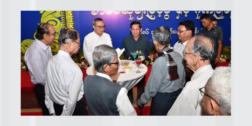 Upon their arrival, the Prime Minister and wife were warmly welcomed by the attendees, and joined an honorary dinner while enjoying the performances of melodious songs and dances by artists from the Fine Arts Department, Myanma Radio and Television and the Myawaddy entertainment troupe. Following the dinner, the Prime Minister and wife honored the performing artists with flower baskets.