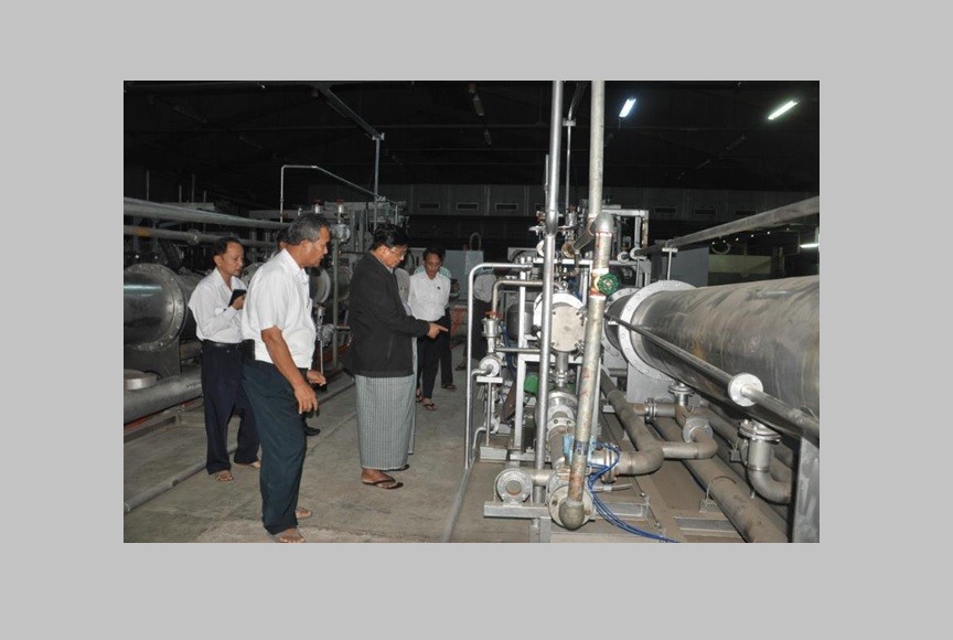 Union Minister for Industry Dr Charlie Than visited No.1 Garment Factory in ShweTaung of Bago Region on 10th December, and inspected the process of installing the machinery equipment for dying the fabric.