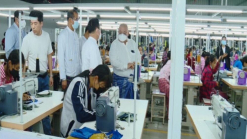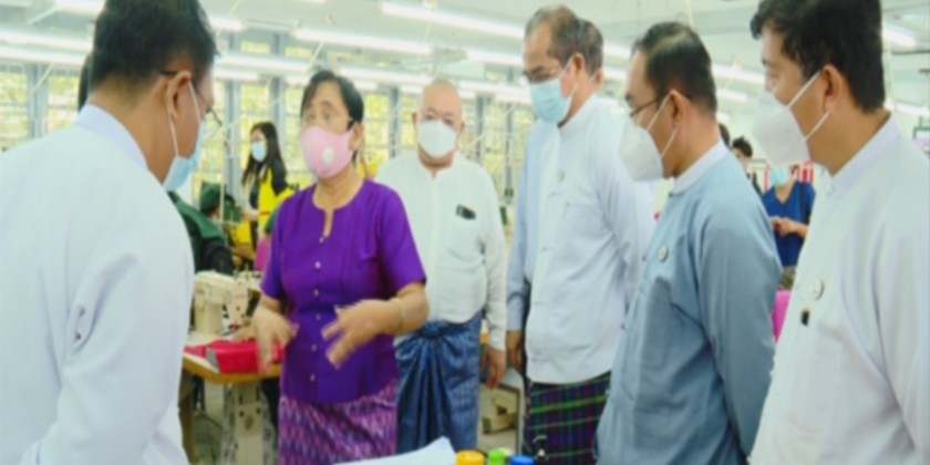 The Union Minister also visited the Assessment Centre of Lat War Co., Ltd in Yeni. Factory officials clarified the factory operation and skill test processes. There, the Union Minister also checked the sewing machine operation skill tests of 50 Chindwin Tagun garment factory workers.