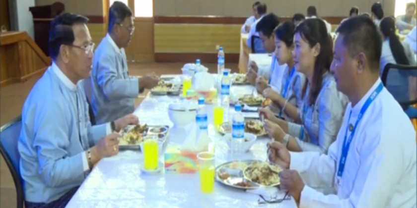 Union Minister for Information U Maung Maung Ohn had lunch together with the Ministry staff at the assembly hall of the Ministry on Tuesday as recognizing the staff like the family who are performing duties responsibly in their respective roles for operating the government's mechanism smoothly.