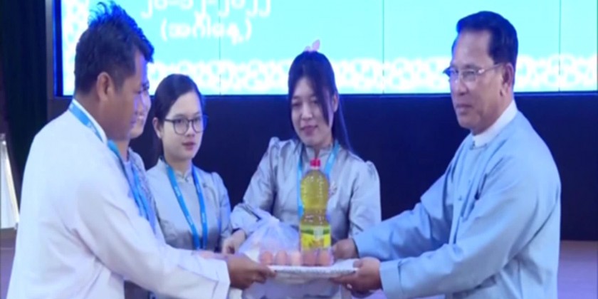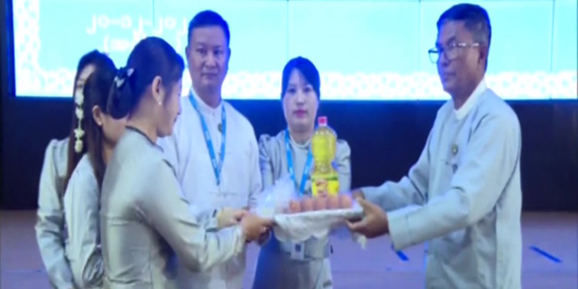 He called for the staffs to perform the tasks dutifully with unity and amity and to have friendship. Later, the Union Minister and Deputy Minister U Ye Tint presented basic food stuff to the staffs and had lunch together with them.