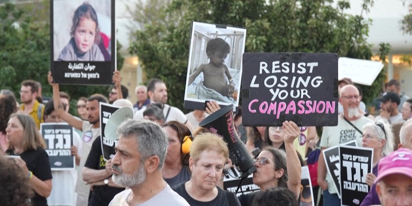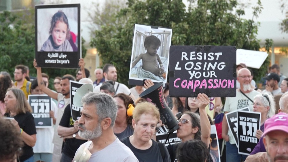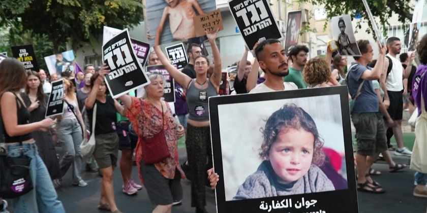 Israeli activist march in Tel Aviv, denouncing the ongoing food shortages in the Gaza Strip. According to the head of Gaza's largest hospital, 21 children have died due to malnutrition and starvation in the past three days.