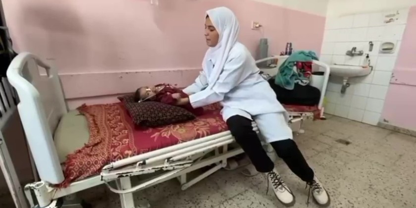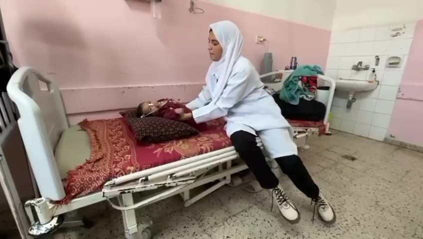 Janna Muteir receives care in a small room at the Nasser Medical Complex, where shortages of food and medicine and the collapse of the health system have worsened conditions for children with rare illnesses. The conflict, now in its second year, has left many young patients vulnerable, highlighting the humanitarian crisis affecting Gaza’s most fragile residents.