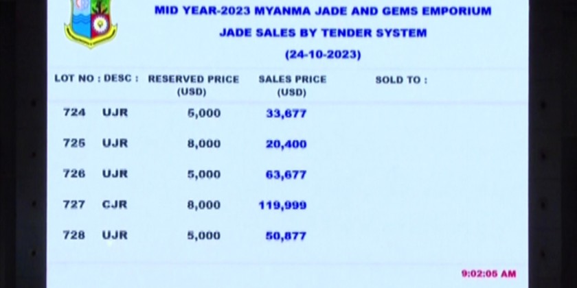 The going to sell 750 jade lots were observed by local and foreign merchants and bids were placed in the tender box. The tender forms were closed at 3pm and the sale of jade lots will be announced at 8am on 25th of October. Moreover, the remaining jade lots are going to be displayed at Maniyadana Jade Hall in Nay Pyi Taw till 28th of October.