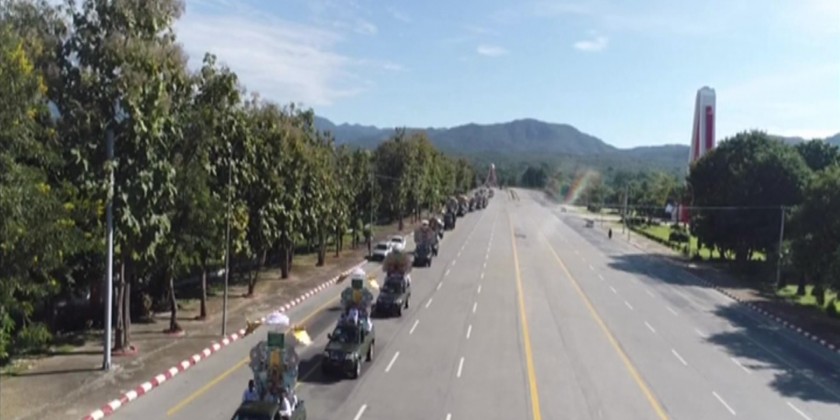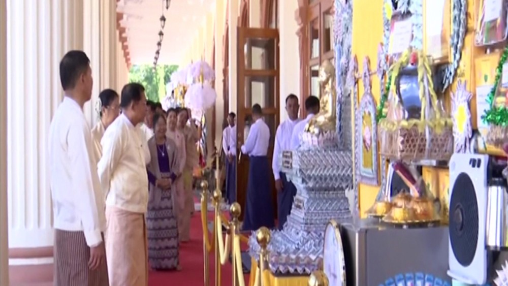 Families of the Office of the Commander-in-Chief (Army, Navy, Air) organized the 13th Kathina Donation Ceremony on Friday. Prior to the ceremony, Chairman of the State Administration Council, Commander-in-Chief of Defence Services, Senior General Min Aung Hlaing and wife, and party, viewed the display of donated items for the monasteries.