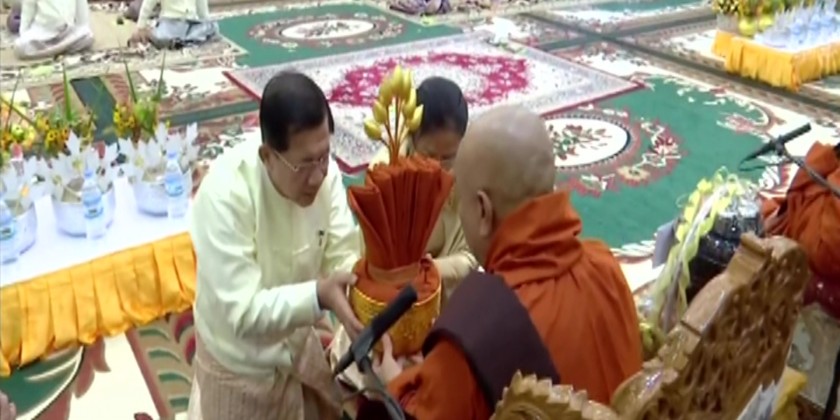 Vice Chairman of the State Administration Council, Deputy Commander-in-Chief of Defence Services, Commander-in-Chief (Army) Vice Senior General Soe Win and wife also made similar donations to the Pali Sayadaw. This was followed by donations of Kathina robes and offertories to the Sayadaws and members of the Sangha by the Senior Military officers and their wives.
