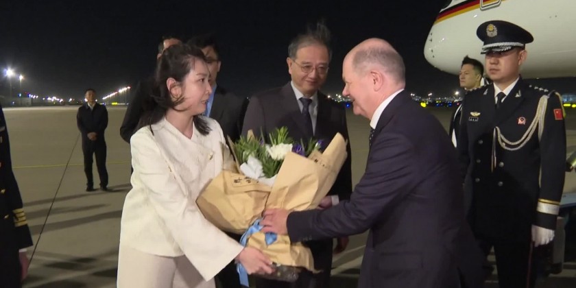 Federal Chancellor of Germany Olaf Scholz arrived in Beijing on Monday night, the third stop on his three-day official visit to China.Scholz was greeted by Chinese Vice Foreign Minister Deng Li at the airport. He visited southwest China’s Chongqing Municipality on Sunday, and Shanghai on Monday.This is Scholz’s second visit to China since taking office in 2021.