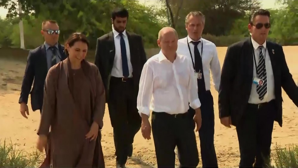 German Chancellor Olaf Scholz arrived in Abu Dhabi on Sunday as part of a trip aimed at striking new energy deals. Scholz toured an environmental project at a mangrove park with the UAE's climate change minister Mariam Almheiri.