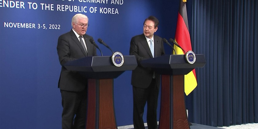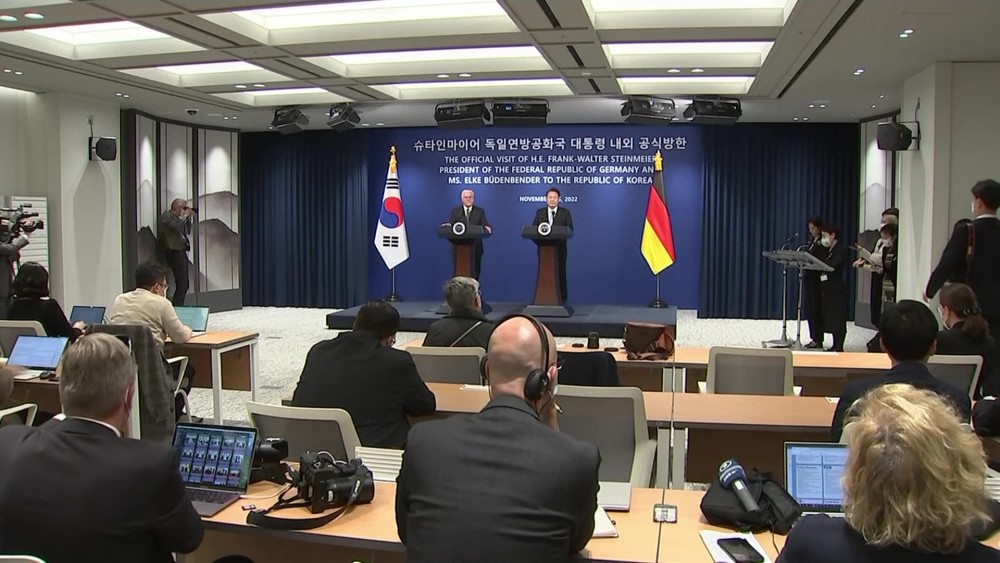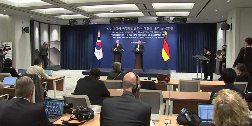 German President Frank-Walter Steinmeier condemned North Korea's missile provocations and urged North Korea to resume dialogue during a news conference in Seoul on Friday. Steinmeier met with South Korean President Yoon Suk-yeol to discuss bilateral issues and jointly tackle supply chain and energy crisis.