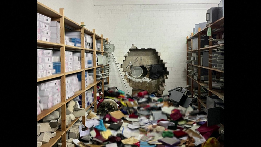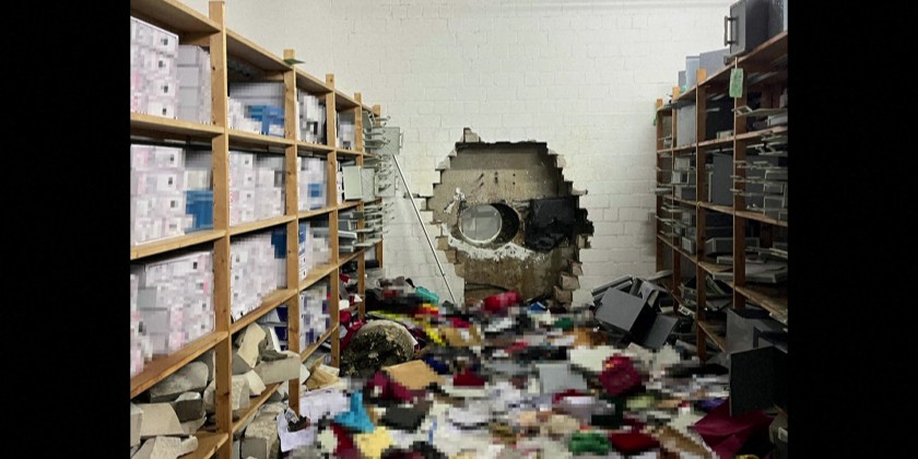 The break-in came to light after a fire alarm was triggered in the early hours of Monday and emergency services discovered the hole. Witnesses reported seeing several men carrying large bags in the stairwell of the parking garage during the night from Saturday to Sunday.