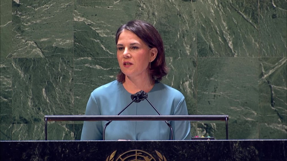 Germany's Foreign Minister AnnalenaBaerbock told the UN General Assembly on Tuesday her country is stepping up military and humanitarian aid to Ukraine.