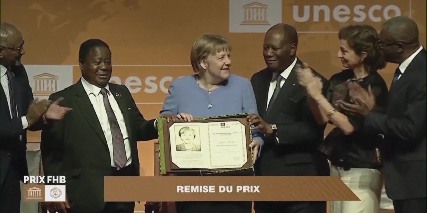The Félix Houphouët-Boigny Peace Prize awarded to Merkel on Wednesday is named for Ivory Coast's first president after independence from France in 1960. The award was presented to Merkel in Yamoussoukro, Ivory Coast's capital and the hometown of the late Houphouët-Boigny.