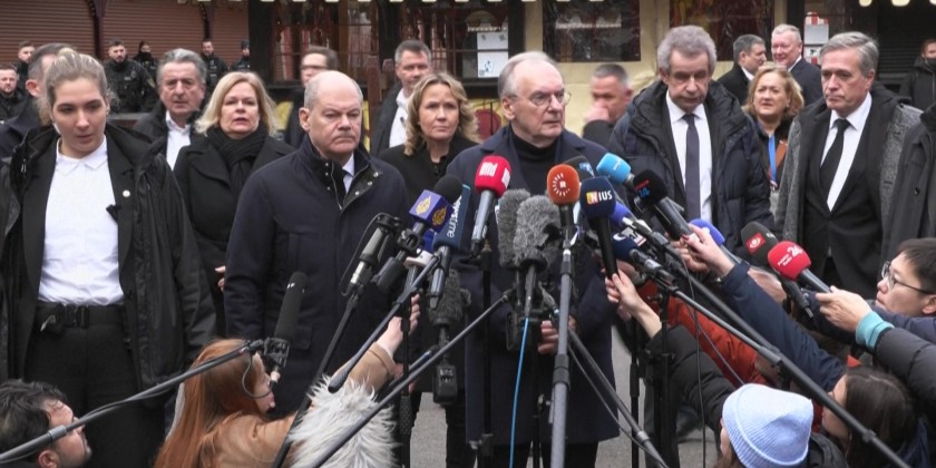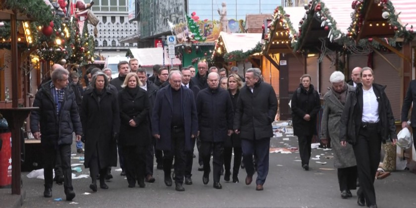 German Chancellor Olaf Scholz visited the site of a deadly car-ramming attack at a crowded Christmas market, where five people were killed and more than 200 injured. Scholz is accompanied by numerous national and regional politicians in the eastern city of Magdeburg. He pledged that Germany will respond "with the full force of the law" to the car-ramming attack.