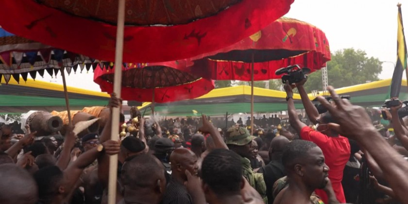 The Ghana royal treasures from the Fowler Museum, including a gold necklace, an ornamental chair and an elephant tail whisk were presented during a ceremony of chiefs at the Manhyia Palace in the city of Kumasi.The objects will be displayed at the Manhyia Palace Museum as part of the year-long celebration.