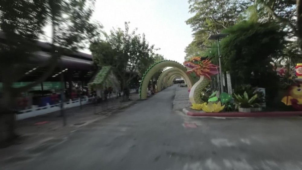 Giant dragon lanterns light up Buddhist temple for upcoming lunar New Year