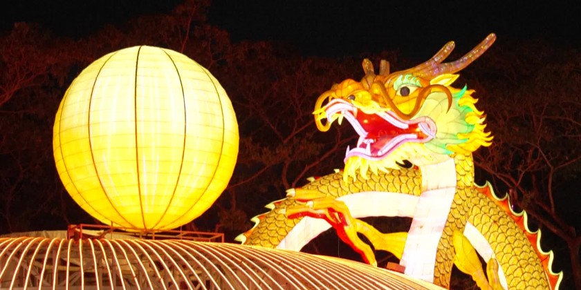 Since 2004, the dazzling light show matches the upcoming "Year of Dragon" with scores of illuminated Dragon structures and festive decorations at the Dong Zen Temple in Jenjarom of Malaysia.