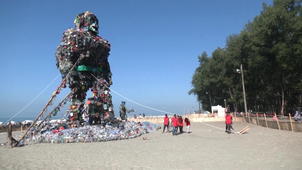The statue was made with the help of students of Dhaka University's fine arts department. And, it is the largest plastic monster in the world, erected to create awareness about the threat of plastic pollution to marine biodiversity and human life.