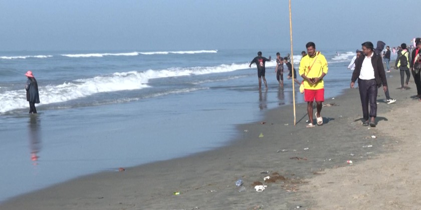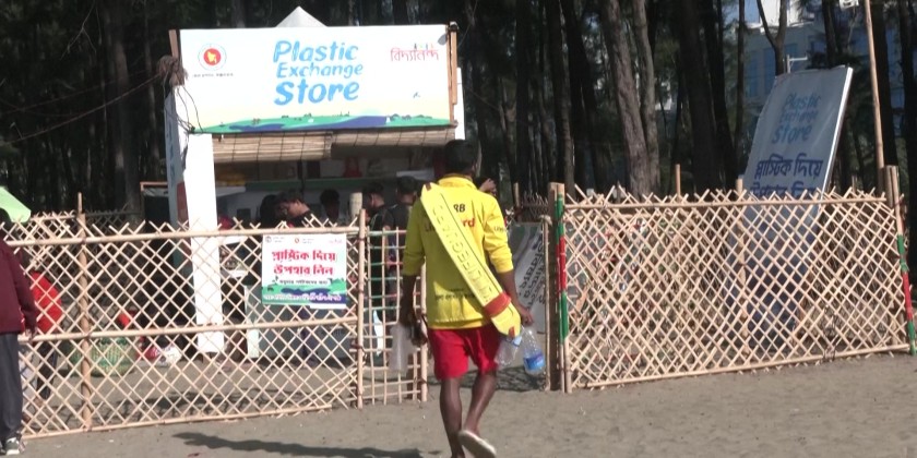 Volunteers and local administrators build an approximately 19-metre Statue at Cox's Bazar Beach in Bangladesh with 10 metric tons of plastic waste collected from nearby shores.