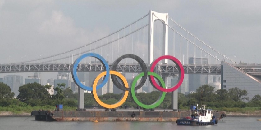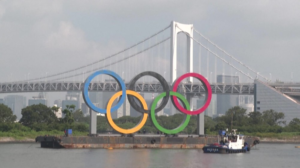 A giant set of Olympic rings installed off Tokyo's waterfront was towed away for inspections and maintenance on Thursday after the coronavirus forced the year-long postponement of the 2020 Games. The 69-ton interlocking rings went up off the Odaiba bay area at the beginning of the year, as the city began the final countdown to the Summer Olympics.