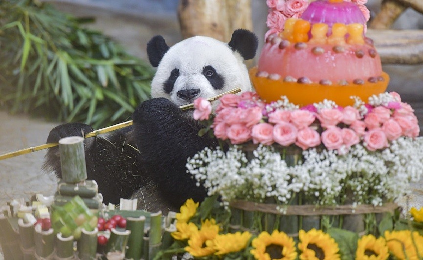 Giant pandas Gonggong and Shunshun marked their 11th birthday with a festive celebration at the Hainan Tropical Wildlife Park and Botanical Garden on Saturday. The beloved pandas were treated to custom-made birthday cakes, and the event attracted zoo staff and numerous visitors. Visitors prepared many gifts for them and participated in a number of activities to share the joyful moment.