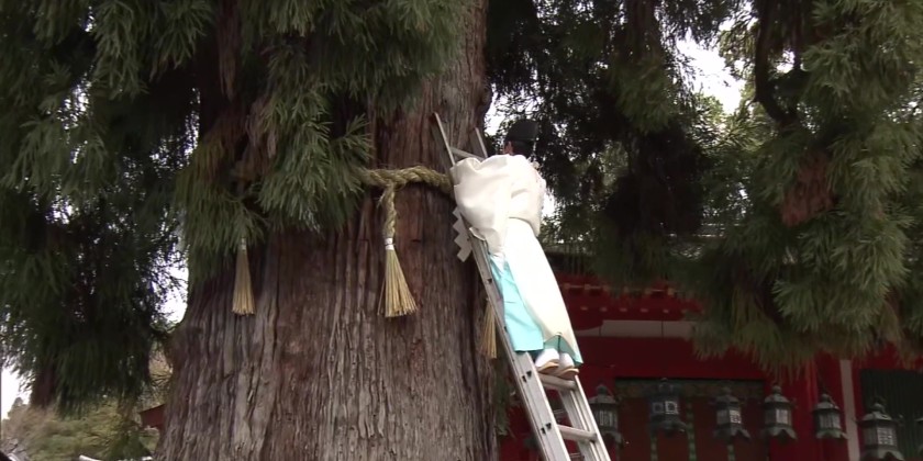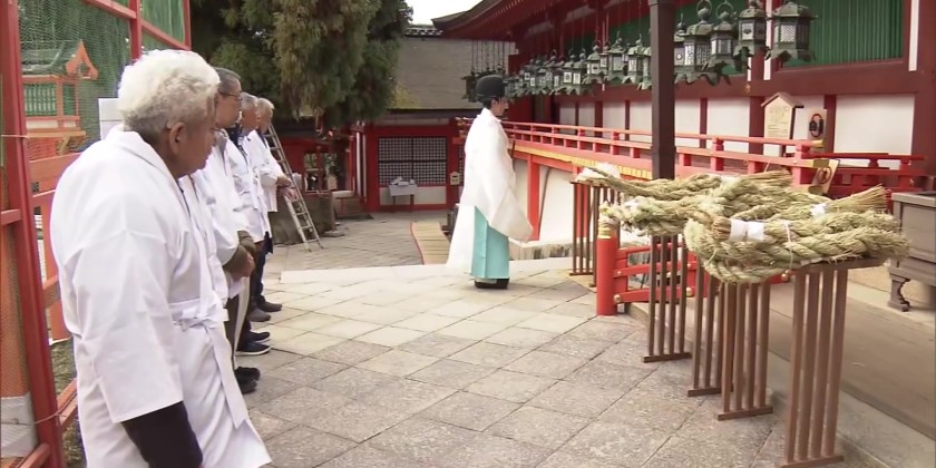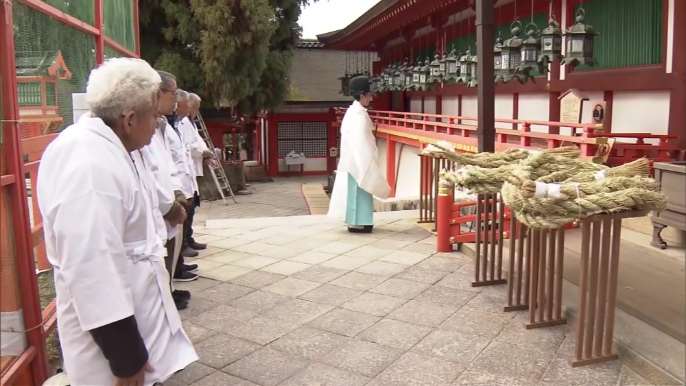 A giant sacred rope known as Shimenawa has been installed as part of the New Year’s preparations at a Shinto shrine in Nara prefecture, Western Japan. The thick straw rope at the Kasugataisha Shrine in Nara City is changed at this time every year. They replace a sacred rope over the tree at the shrine, as part of a tradition ahead of New Year.