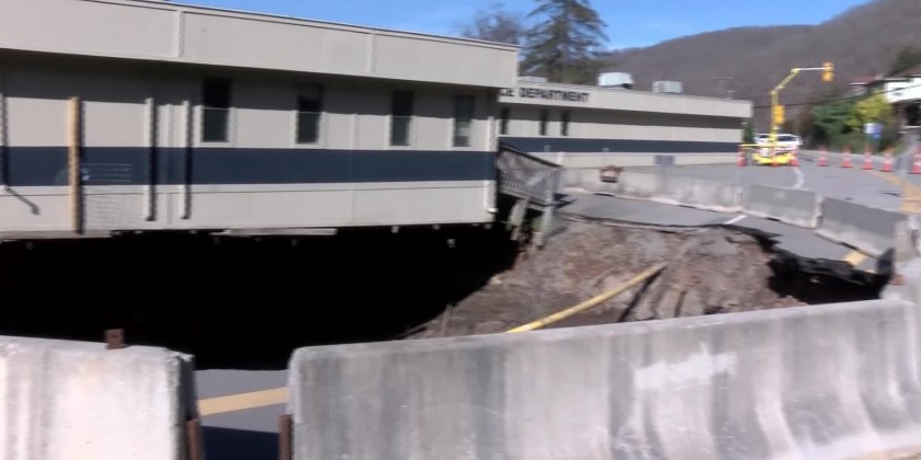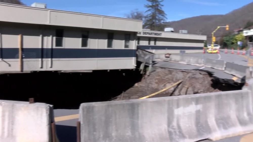 More ground caved in this month after the remnants of Hurricane Nicole dropped heavy rain on the town of about 2,300 people.The police department evacuated its building and now the sinkhole has taken part of nearby Route 20, which is the only road to one of the local schools. Some students are now in remote learning.State officials are considering erecting a temporary steel bridge -- 125 feet long -- to keep traffic flowing.
