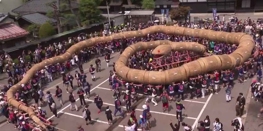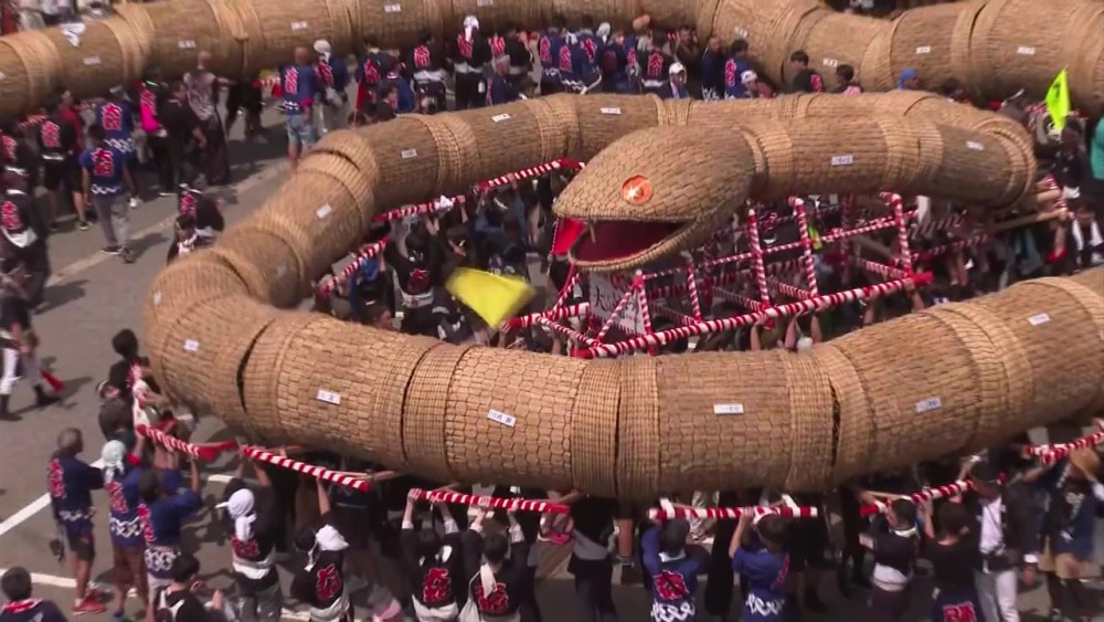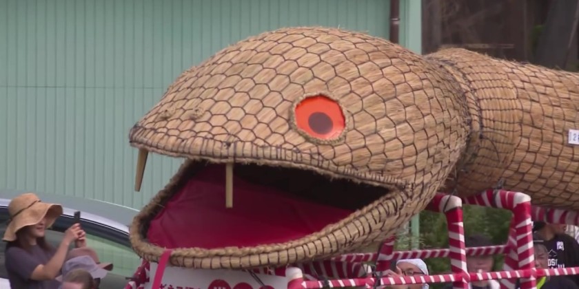 A snake over 80 meters long made of bamboo and straw was paraded through a village in the Japanese prefecture of Niigata on Sunday. The procession took place in Sekikawa Village as part of a festival held every August. The figure chosen to commemorate a water-related disaster that struck on August 28, 1967. This year, the serpent was rebuilt for the first time in eight years after showing signs of wear. It now weighs about 2 tons.
