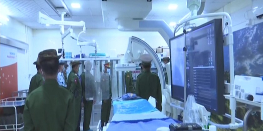 The Vice-Senior General inspected Angiogram machine at the intensive care unit for cardiac patients. Daw Than Than Nwe, wife of the Vice-Senior General, and party presented aids at the maternity ward where she gave words of encouragement to pregnant mothers.