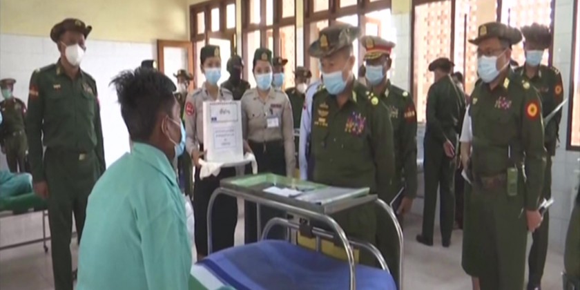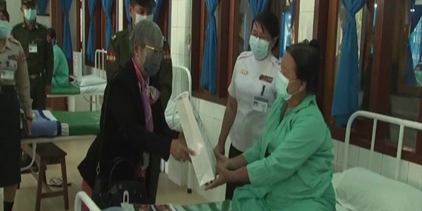 Vice Chairman of the State Administration Council, Deputy Commander-In-Chief of Defence Services Commander in Chief (Army) Vice Senior General Soe Win together with officials gave encouragement to officers, other ranks and their families and people who are receiving medical treatment at the military hospital in Aung Pan of southern Shan State on Sunday morning and held separate meetings with specialists, medical officers and nurses.