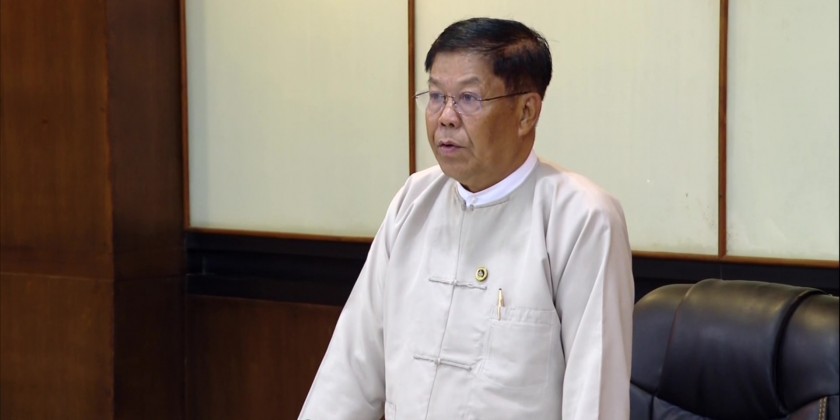 Deputy Prime Minister Union Minister for Foreign Affairs U Than Swe delivered a speech at the meeting with chargés d’affaires, officers and staff who will serve duties at the Myanmar Embassy, permanent representative offices, and consulates in foreign countries held at Ayeyawaddy Hall of the Ministry in Nay Pyi Taw in the morning on 9th April.