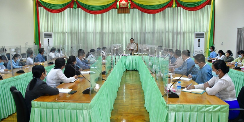 The occasion of giving remark to the staff members who will sit for qualifier test for the promotion from the deputy staff officer post to the staff officer was held at the meeting hall of the ministry of ethnic affairs, Nay Pyi Taw on Friday in line with the directives of COVID-19 preventive measures.