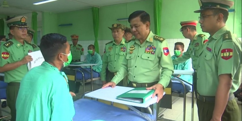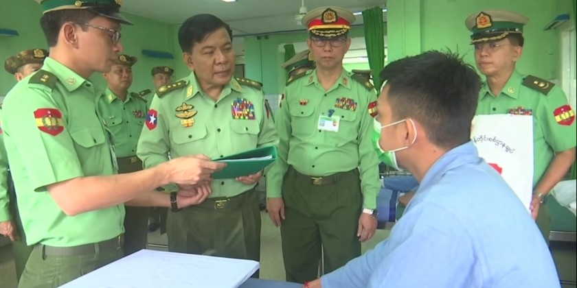 The Chief of General Staff (Army, Navy and Air) General Maung Maung Aye and wife, accompanied by senior military officers from the Office of Commander in Chief, Yangon Region Chief Minister U Soe Thein, Commander of Yangon Command and other concerned officials, visited the Defense Services Specialty Orthopaedic Hospital (500-bed) in Mingaladon Township of Yangon Region on Monday.