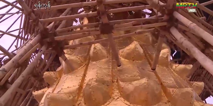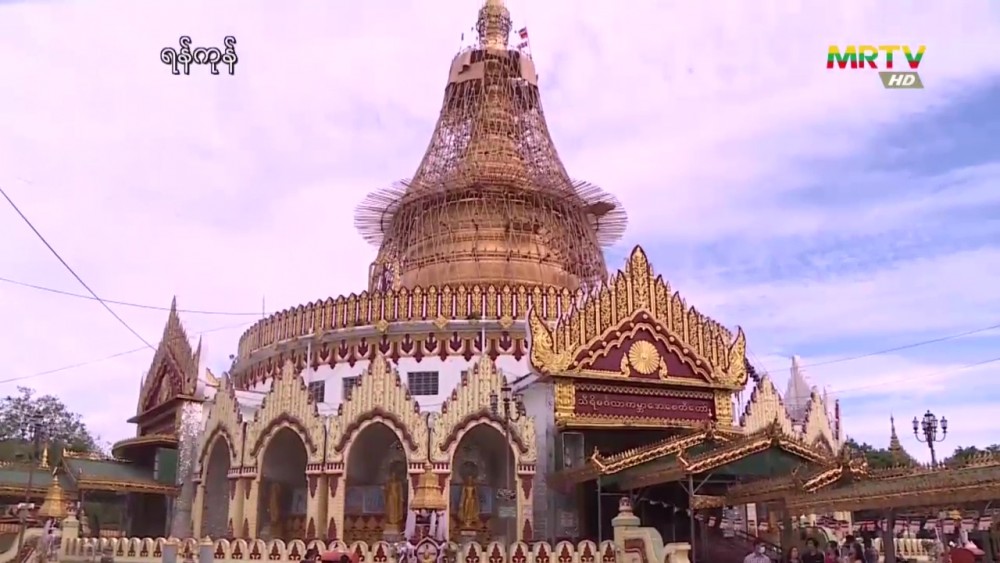 Hla Tun, Member, Kabar Aye Pagoda Board of Trustees said "We offered a total of 439 ticals gold plates around the banana bud. 316 ticals of gold plates were offered at the lotus petals and reliefs under the banana bud of the pagoda. We continue to offer gold to the pagoda depending on receiving donations. We also invite the donors for the pagoda."