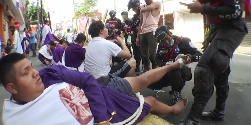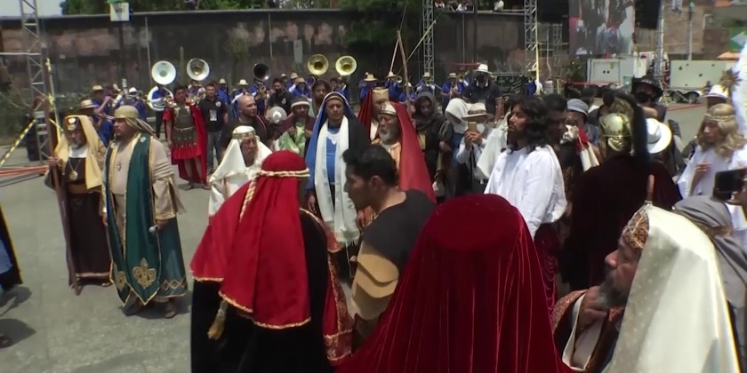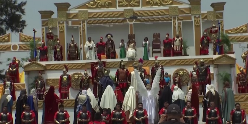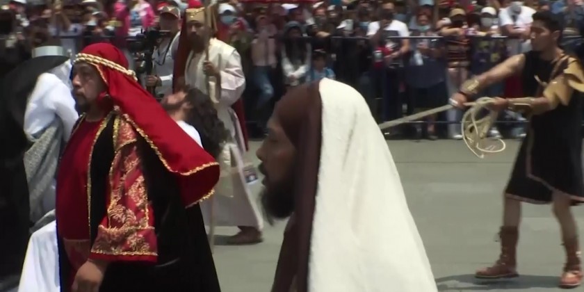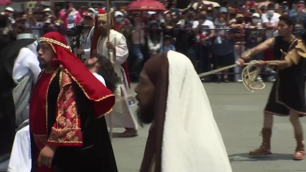 Catholics watched a re-enactment of the Passion of Christ on Good Friday in Mexico City. The event has taken place annually since 1843 when residents thanked God for the end of a cholera epidemic and promised to stage a dramatisation of the Christ's Passion every Easter.