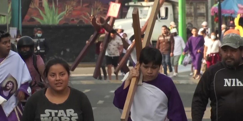 In another annual tradition, worshippers carry wooden crosses through the streets of the neighbourhood of Iztapalapa. Nearly 90% of the more than 100-million people who live in Mexico are Roman Catholics.