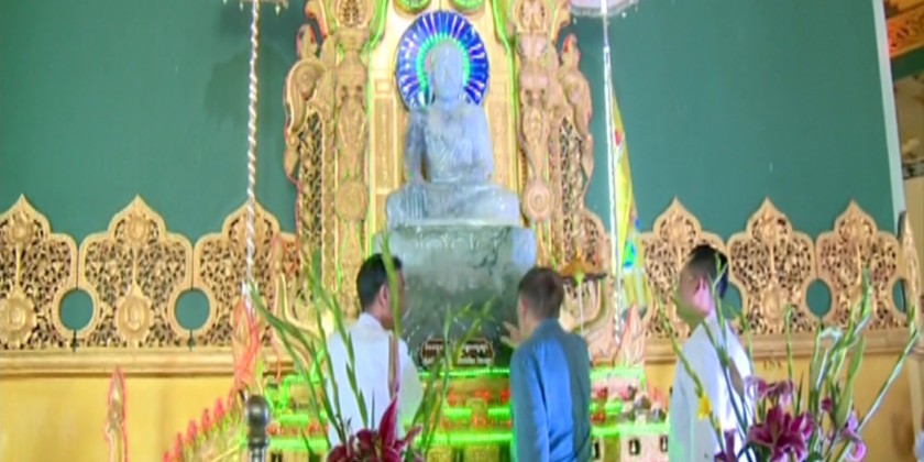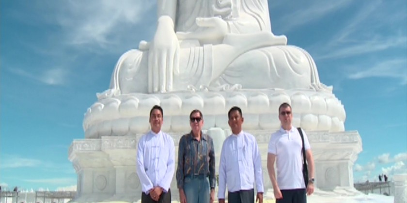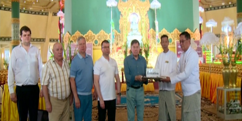 On the 24th, the Russian goodwill delegation paid homage to Jade Buddha Image in the cave of Uppathasanti Pagoda in Nay Pyi Taw and offered flowers and water. After taking photos on the platform of the pagoda, the delegation visited Royal white elephant hall in the eastern corner of the pagoda and fed the white elephants.