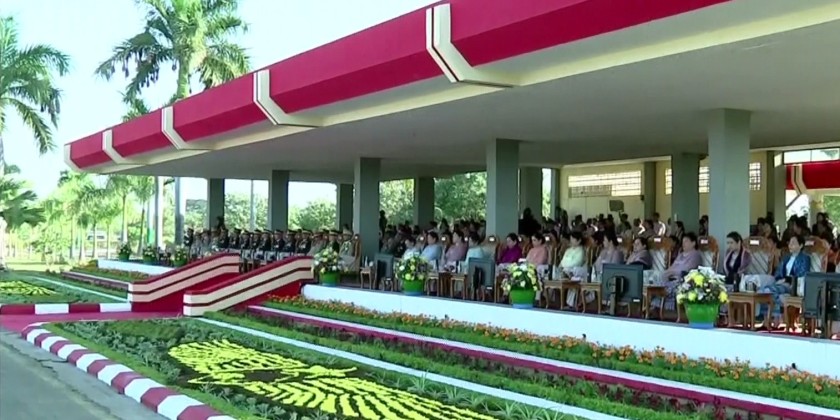 A Graduation Ceremony for the 86th Intake Pilot Course of Defence Services (Air) took place in Meiktila on Thursday. On behalf of the Chairman of the State Administration Council Commander-in-Chief of Defence Services, Commander-in-Chief (Air) General Tun Aung attended the ceremony and took the salute of the companies.